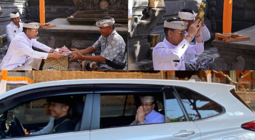 Barometer Bali | Klungkung – Bupati Klungkung I Made Satria menghadiri rangkaian Upacara Karya Mamungkah Caru Balik Sumpah, Ngenteg Linggih, Nyenuk, Mekebat Daun, dan Nangun Ayu Pura Melanting di Desa Adat Sarimertha, Desa Negari, Kecamatan Banjarangkan, Rabu (13/8/2025). Upacara ini dilaksanakan untuk menyucikan seluruh area pura yang baru selesai dipugar dan direnovasi.