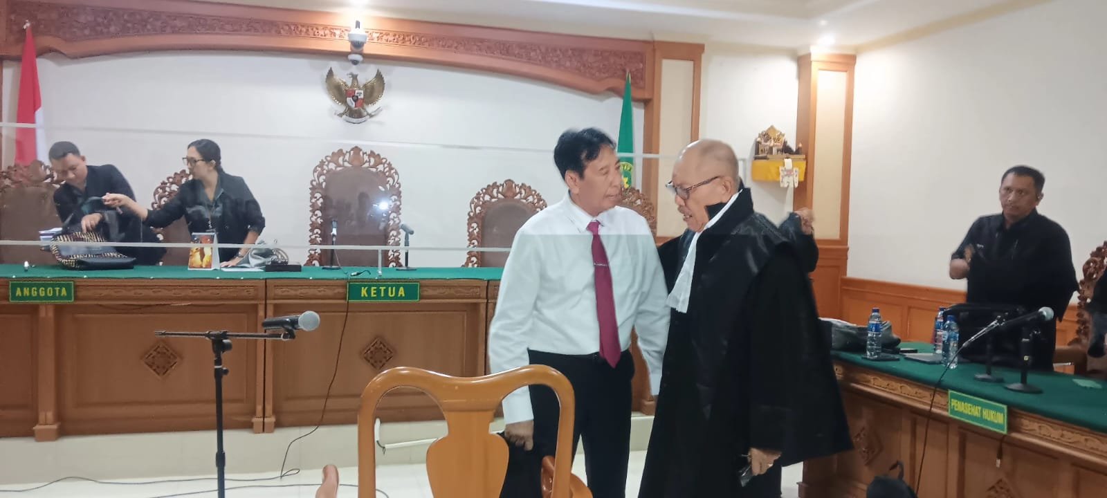 “Seharusnya agenda sidangnya hari ini adalah tanggapan dari Jaksa Penuntut Umum (JPU) atas eksepsi (nota keberatan, red) yang dibacakan terdakwa. Karena hakim ketua berhalangan hadir, sidang kita tunda,” jelas Putu Ayu Sudariasih selaku hakim anggota di persidangan Pengadilan Tindak Pidana Korupsi (Tipikor) Denpasar, Selasa (7/11/2023).