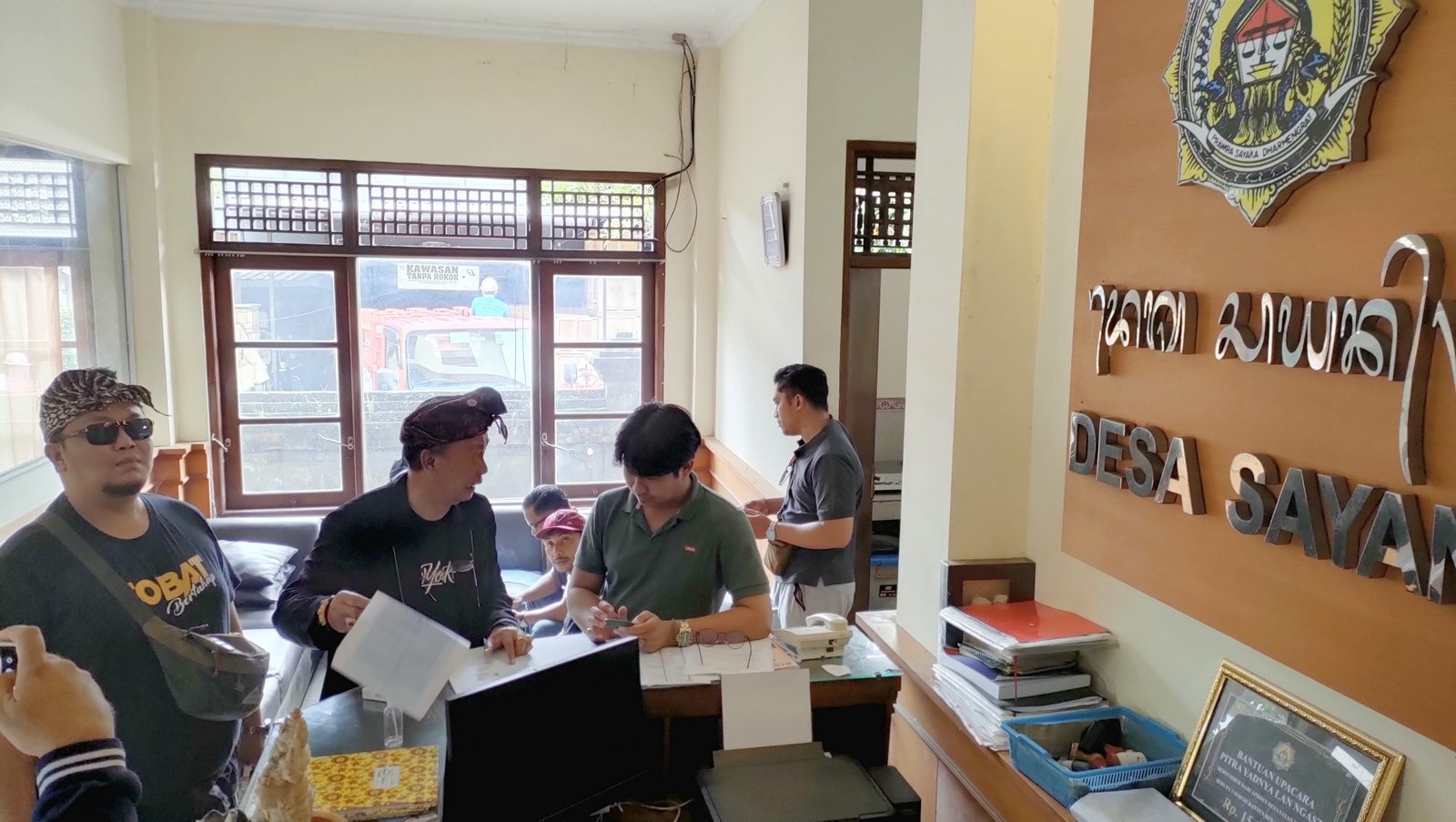 Sekretaris Desa Sayan, I Wayan Artawan, SPd yang menerima kedatangan mereka awalnya mengatakan tidak tahu, namun kemudian menyebutkan Perbekelnya sedang berada di Penestanan Ubud mengikuti acara Pamikukuh Bandesa/Prajuru Adat di sana.