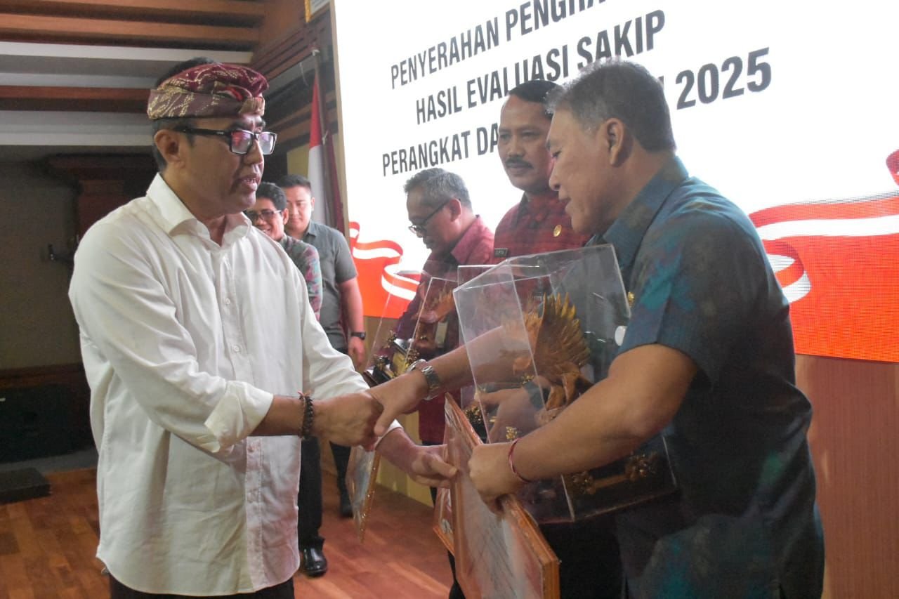 Barometer Bali | Denpasar – Pemerintah Kota Denpasar melalui Inspektorat secara resmi menyerahkan Penghargaan Hasi Evaluasi Sistem Akuntabilitas Kinerja Instansi Pemerintah (SAKIP) Organisasi Perangkat Daerah (OPD) di lingkungan Pemerintah Kota Denpasar Tahun 2025. Penyerahan penghargaan tersebut dilaksanakan langsung Walikota Denpasar, I Gusti Ngurah Jaya Negara didampingi Sekda Kota Denpasar, Ida Bagus Alit Wiradana serangkaian Kegiatan Penyerahan Penghargaan Hasil Evaluasi SAKIP Perangkat Daerah Tahun 2025 serta Penandatanganan Berita Acara Pertemuan dan Penyampaian Piagam Audit Intern (IAC) di Graja Sewaka Dharma Kota Denpasar, pada Jumat (4/7).