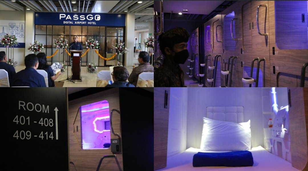 Mangupura | barometerbali – Bandara I Gusti Ngurah Rai Bali meluncurkan fasilitas PassGO-Digital Airport Hotel yang merupakan hotel kapsul pertama yang terletak di dalam kawasan bandara melalui peresmian yang dilaksanakan pada Rabu (19/10/2022) siang. Fasilitas baru yang ditujukan untuk semakin meningkatkan nilai tambah dan kenyamanan, serta untuk menambah pilihan tempat beristirahat bagi para pengguna jasa bandara di Bali.