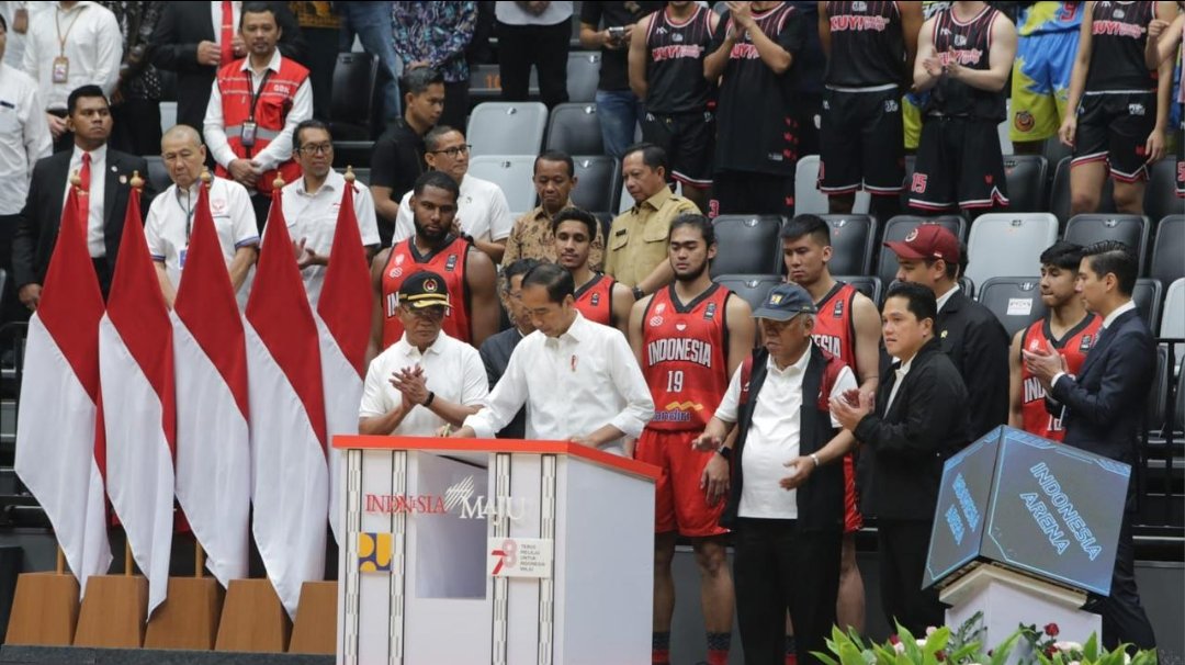“Indonesia arena ini bisa dipakai untuk turnamen basket terutama tapi juga untuk badminton, untuk volley ball, untuk futsal, dan juga tentunya untuk konser,” jelas Jokowi.