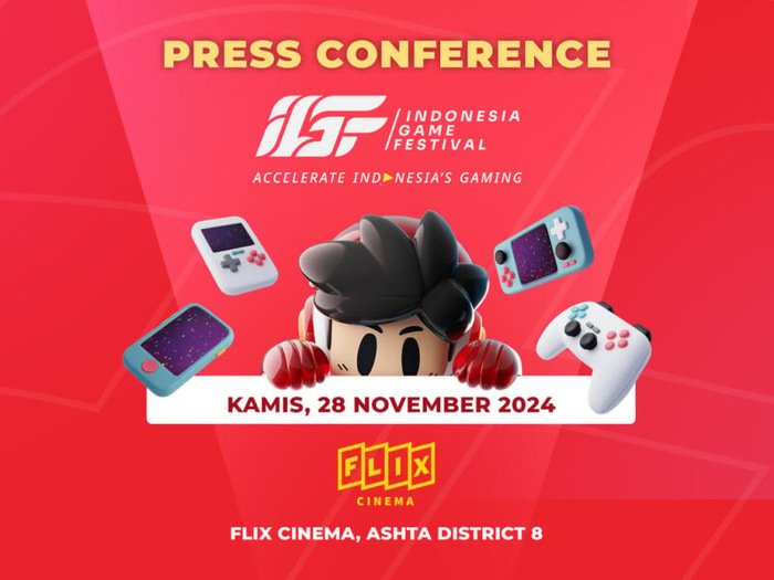 Menyorot potensi yang dimiliki oleh kegiatan IGF 2024, pada hari ini (28/11) penyelenggara juga mengadakan Press Conference yang berlokasi di FLIX Cinema, ASHTA. Jumpa pers ini sebagai langkah nyata untuk memberikan edukasi bagi rekan-rekan media mengenai Unique Selling Point (USP) serta dampak positif yang dimiliki oleh festival game ini.