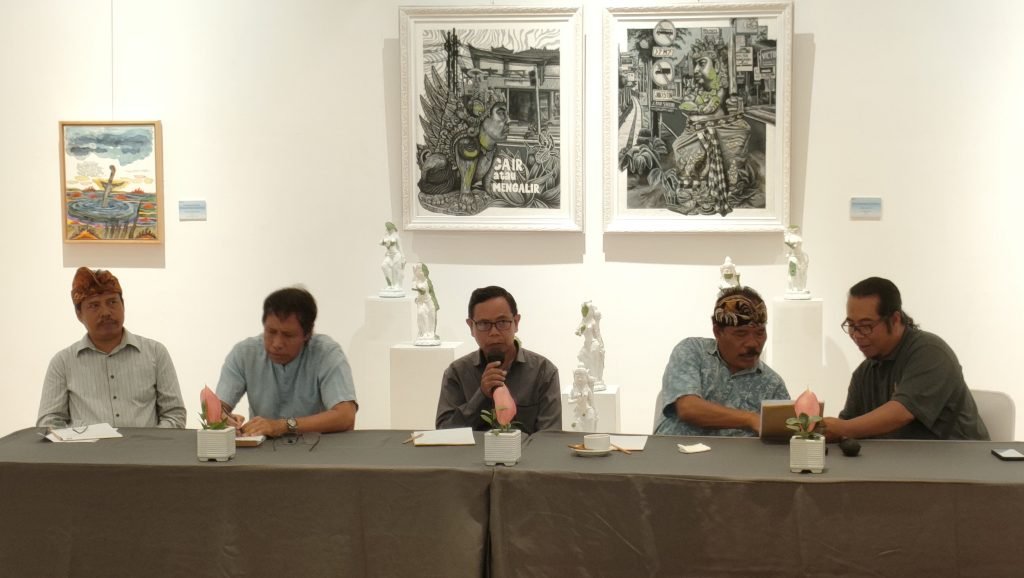 “Tema pameran ini memiliki arti yang signifikan dan berkaitan dengan latar belakang tema besar yang dirancang Pemerintah Provinsi Bali yang tertuang dalam Pesta Kesenian Bali tahun 2023,” jelas Koordinator Pameran I Made Ruta, didampingi akademisi dan perupa I Wayan Sujana ‘Suklu’, Perupa Ubud Wayan Karja, dan Manajer Santrian Galery, Dollar Astawa, saat konferensi pers di Santrian Gallery, Sanur, Kamis, (16/11/2023).
