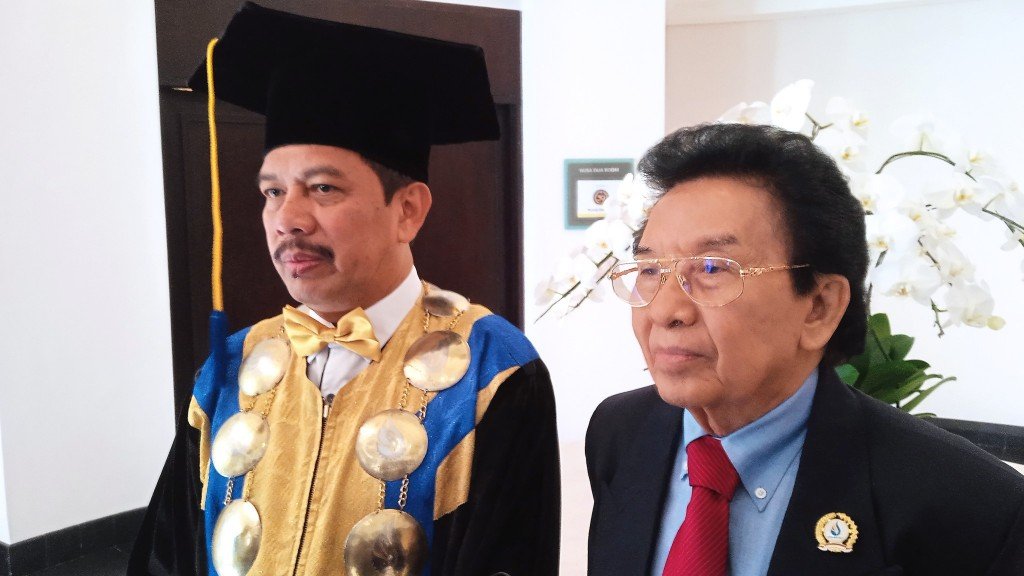 Rektor ITB STIKOM Bali Dr Dadang Hermawan (kiri) dan Pembina Yayasan Widya Dharma Shanti Prof Made Bandem saat memberikan keterangan pers. (igp/literasipost)