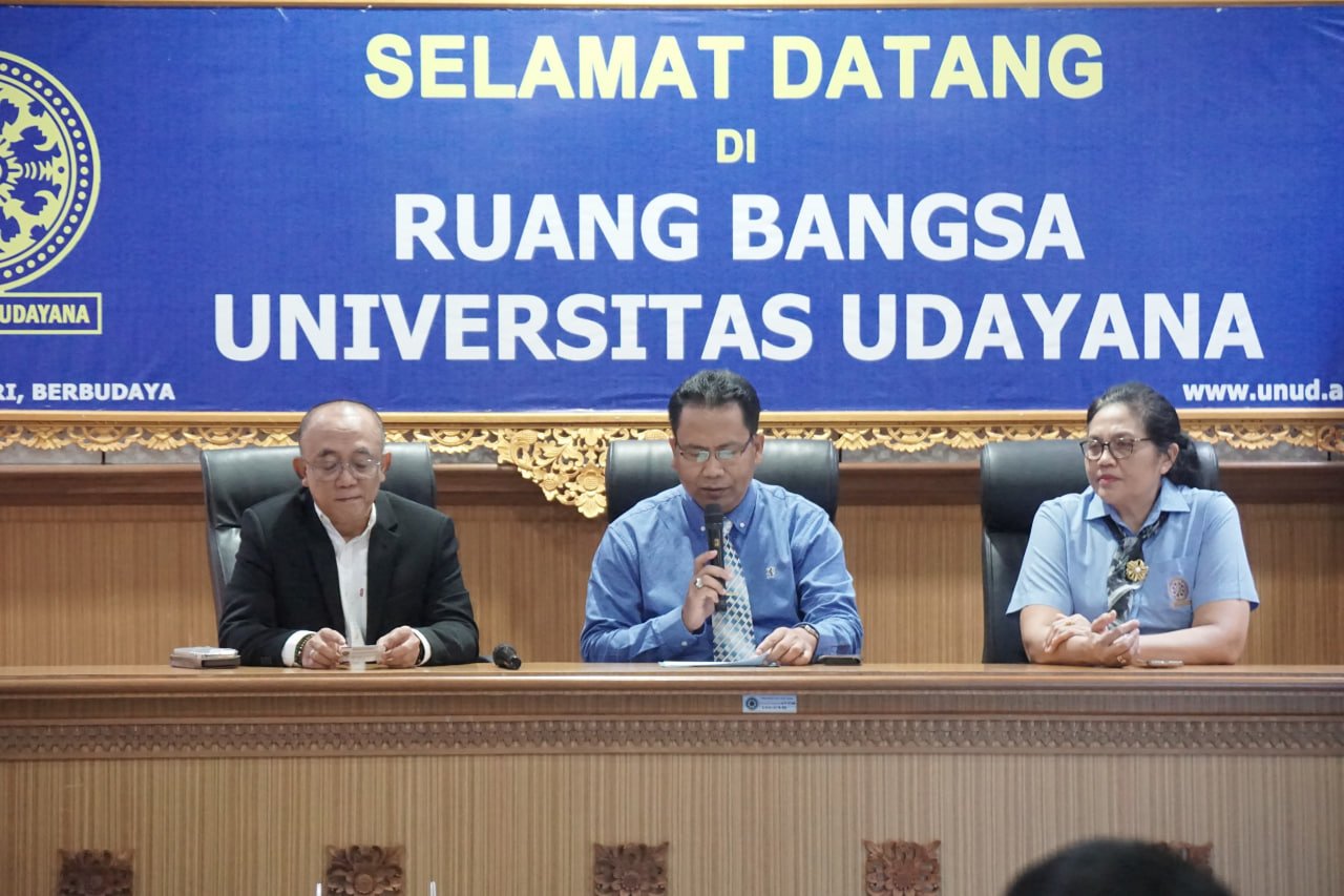 Dalam kesempatannya, Wakil Rektor Prof. I Putu Gede Adiatmika dalam sambutannya memperkenalkan sekilas tentang Universitas Udayana yang memiliki dua lokasi kampus yakni di Kampus Bukit Jimbaran dan Kampus Denpasar serta rencana pengembangan ke depan.