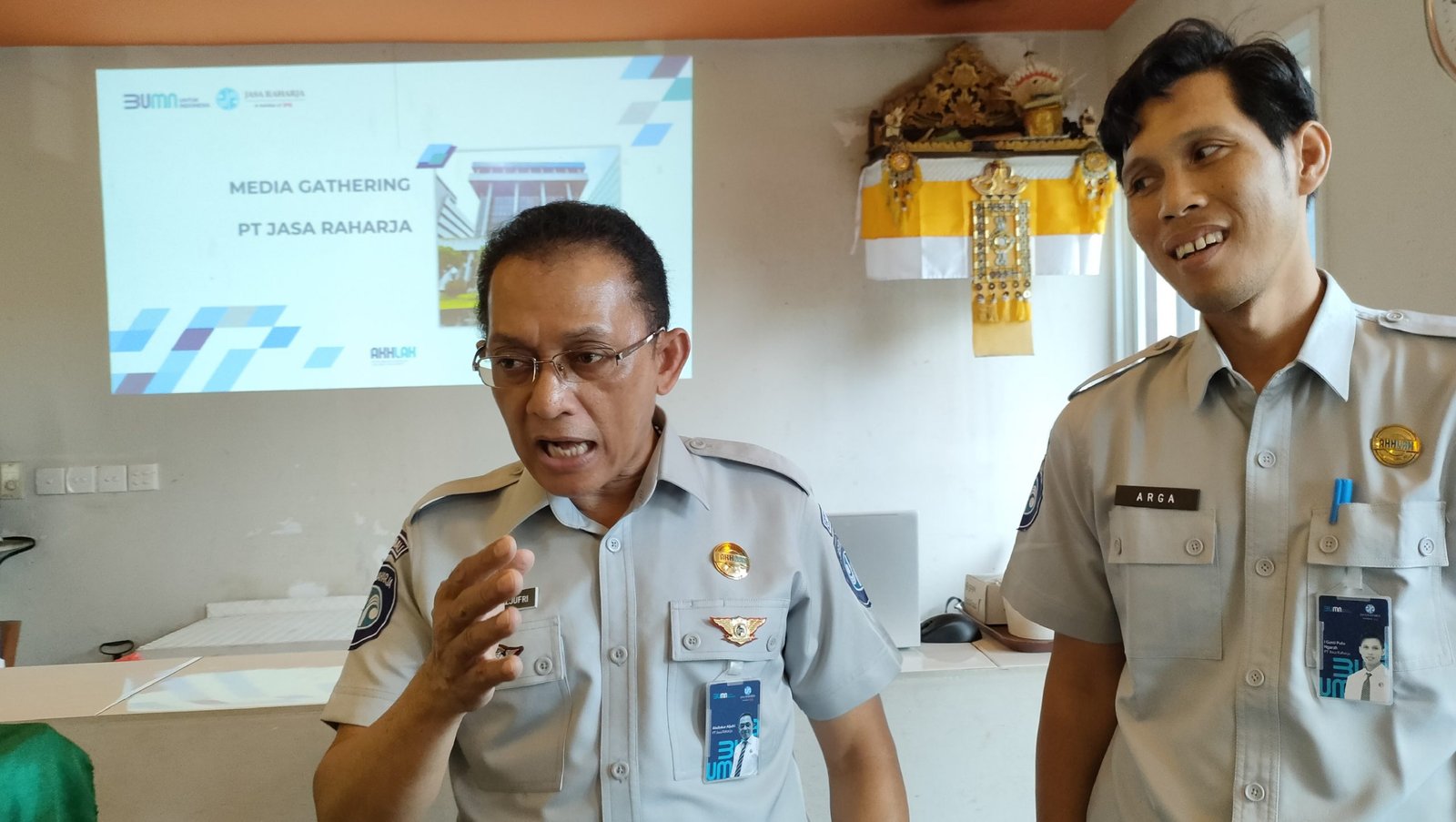 Foto: Kepala Jasa Raharja Bali Abubakar Aljufri (kiri) didampingi Kepala Bagian Operasional PT Jasa Raharja Cabang Bali, I Gusti Putu Ngurah Arga Gotama memaparkan capaian instansinya di depan awak media di Renon, Denpasar, Rabu (14/12/2022). (BB/db)