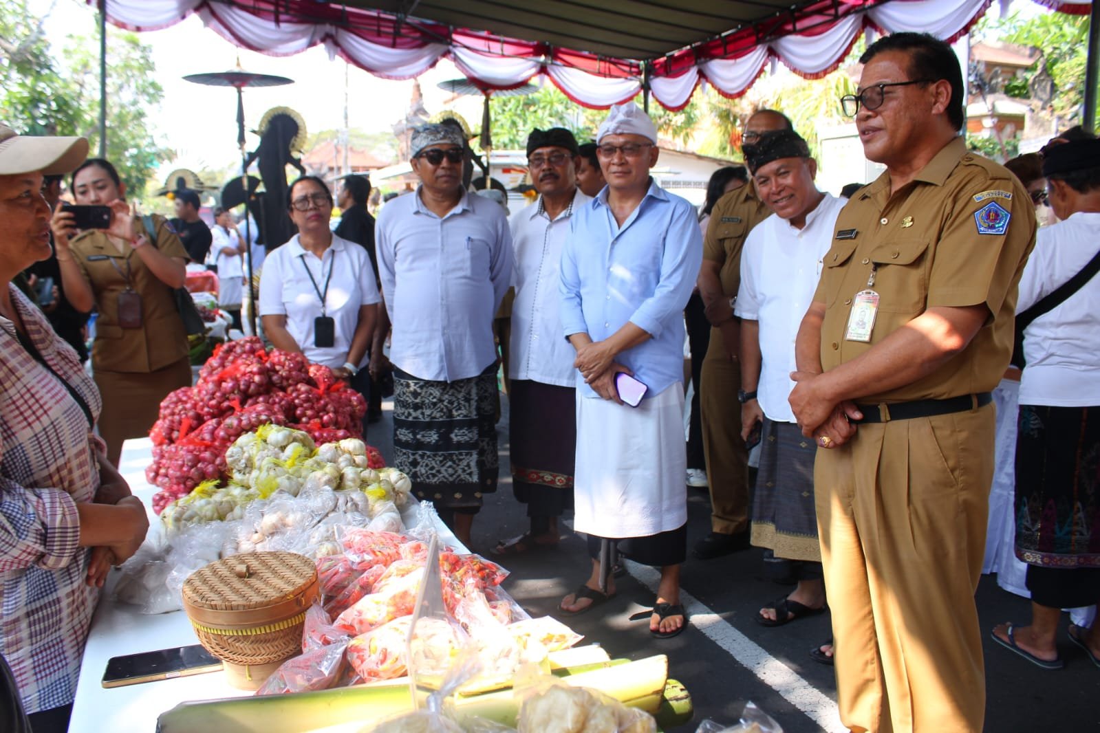 Usai membuka secara resmi Bazar Pangan, Sekda Alit Wiradana langsung meninjau satu persatu stan bazar yang menjual bahan-bahan pokok. Antara lain, beras, minyak, aneka bumbu, pangan UMKM, dan juga aneka buah dan dupa yang merupakan salah satu kebutuhan utama yang digunakan saat hari raya Galungan dan Kuningan.
