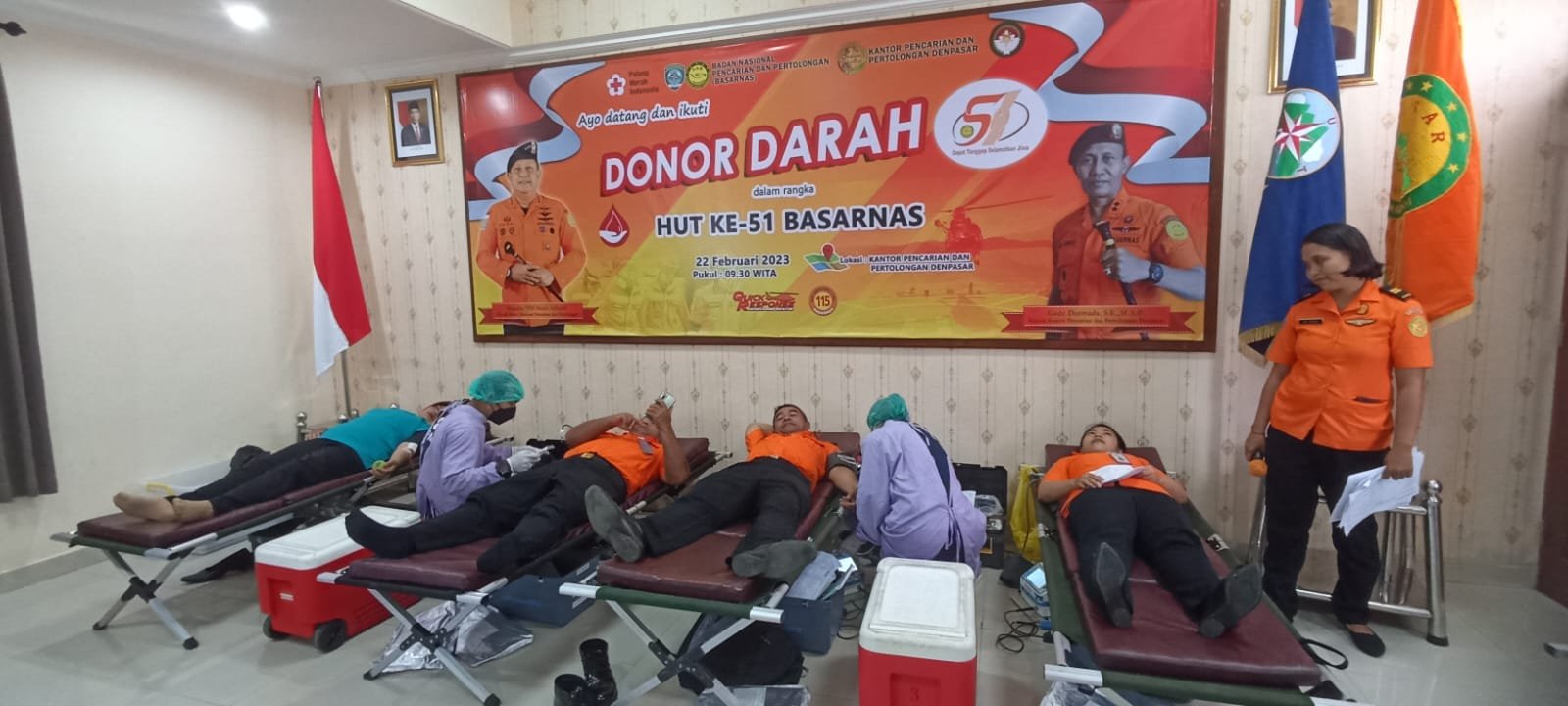 Jimbaran | barometerbali – Bertepatan menjelang puncak acara HUT ke-51 Badan Nasional Pencarian dan Pertolongan, Kantor Pencarian dan Pertolongan (Basarnas) Denpasar, Bali menyelenggarakan acara donor darah di ruang serbaguna Gedung Bayu Suta, Kantor Pencarian dan Pertolongan Denpasar, Jimbaran, Rabu (22/2/2022) pagi.