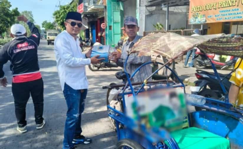 Ket foto: Ketum AMI Baihaqi Akbar SH saat Jumat Berkah bagikan nasi kotak. (Sumber: barometerbali/Redho)