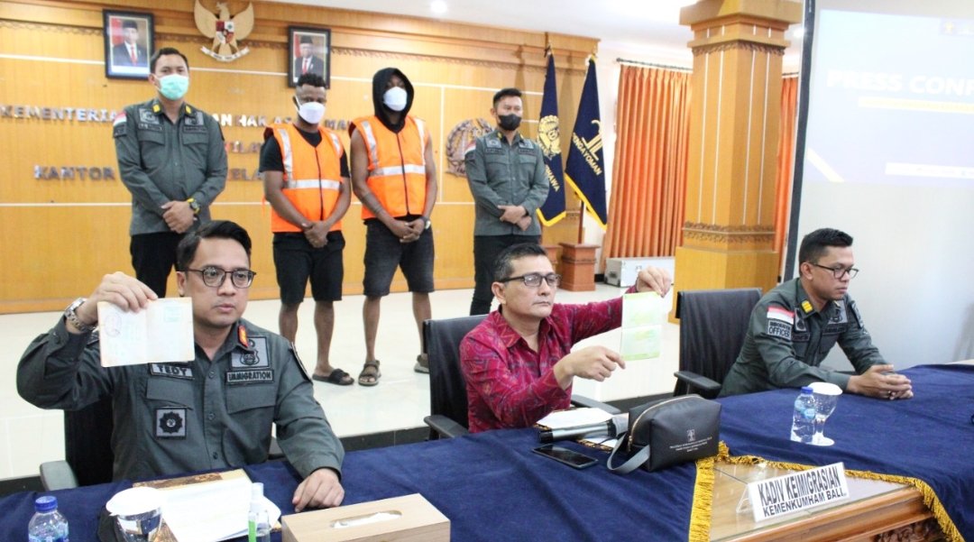 Foto: Tim Inteldakim Kantor Imigrasi kelas I TPI Denpasar merilis 2 WNA yang diduga sudah tidak memiliki izin tinggal Keimigrasian (Overstay) pada Selasa (6/12/2022). (BB/img/kwkkh)