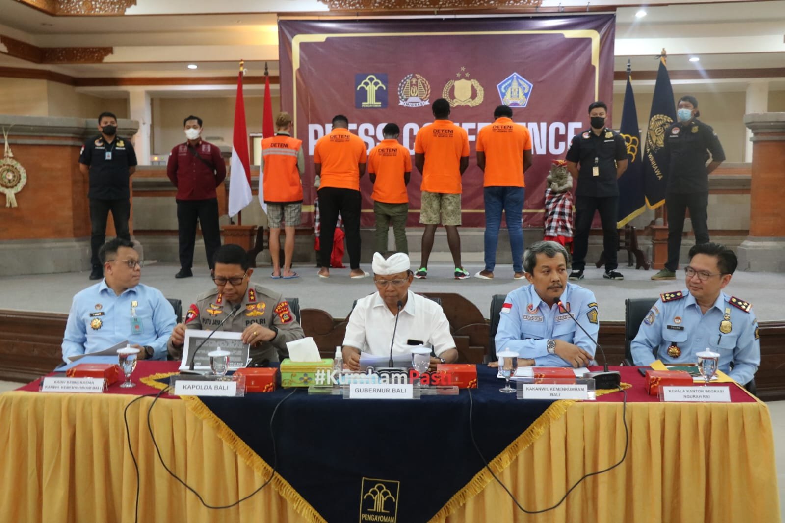 “Ini menunjukkan bahwa selama ini Imigrasi intensif melakukan pengawasan terhadap orang asing dan pada hari ini kita menunjukkan bahwa ada beberapa orang asing yang sudah dan akan dideportasi,” terang Kakanwil Kemenkumham Bali Anggiat Napitupulu mendampingi Gubernur Bali Wayan Koster dan Kapolda Bali Irjen Pol. Putu Jayan Danu Putra