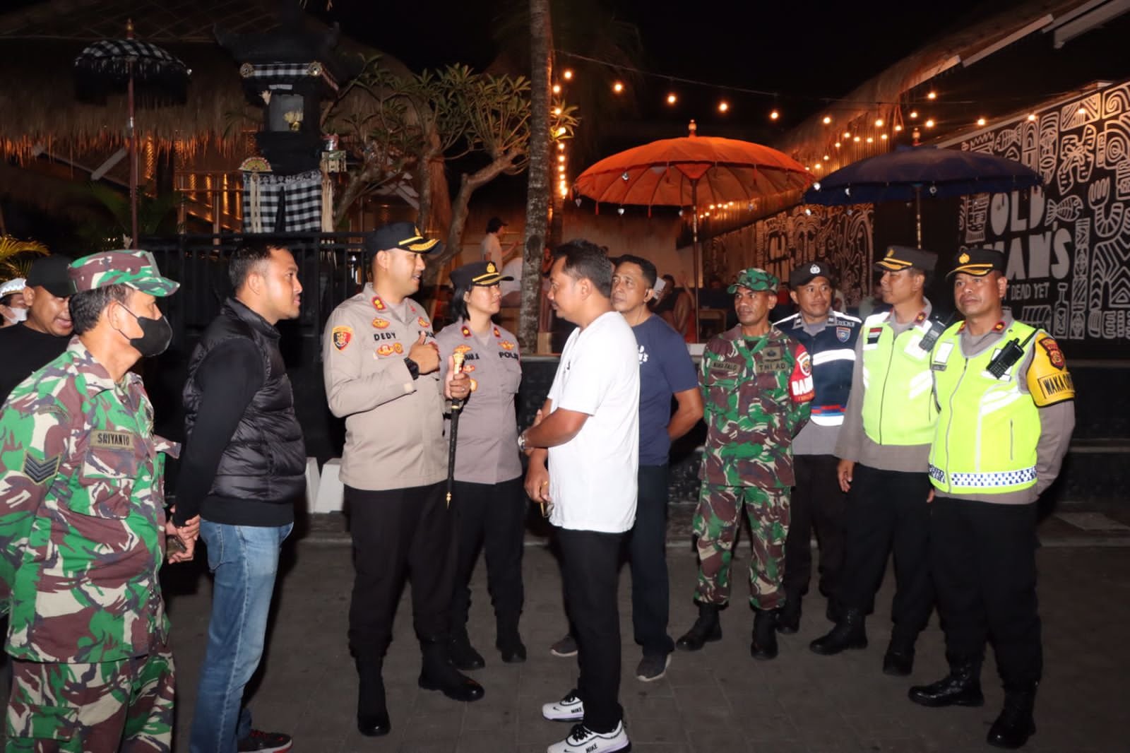 Foto: Kapolres Badung AKBP Leo Dedy Defretes menemui manajer Old Man’s Bar & Restoran di Pantai Batu Bolong, Canggu, Kecamatan Kuta Utara, Kabupaten Badung, Sabtu, (3/12) malam. (BB/db)