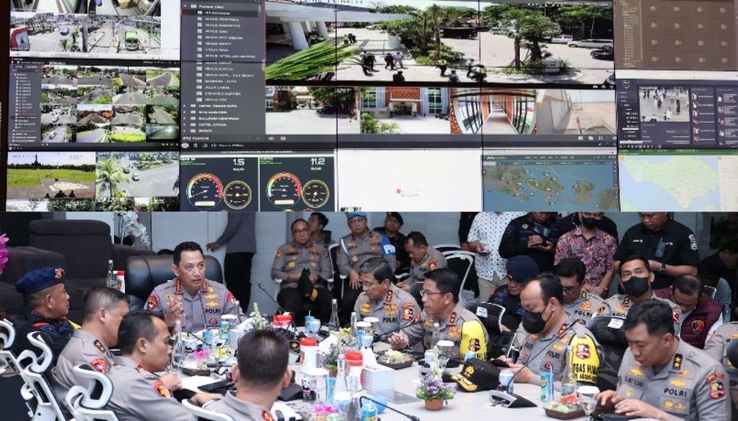 Jakarta | barometerbali – Bersama Pejabat Utama Mabes Polri dan Kapolda Bali, Kepala Kepolisian Negara Republik Indonesia, Jenderal Polisi Drs. Listyo Sigit Prabowo, M.Si. meninjau latihan pengamanan Konferensi Tingkat Tinggi (KTT) G20 secara virtual melalui Command Center Polda Bali, Sabtu (5/11/2022).