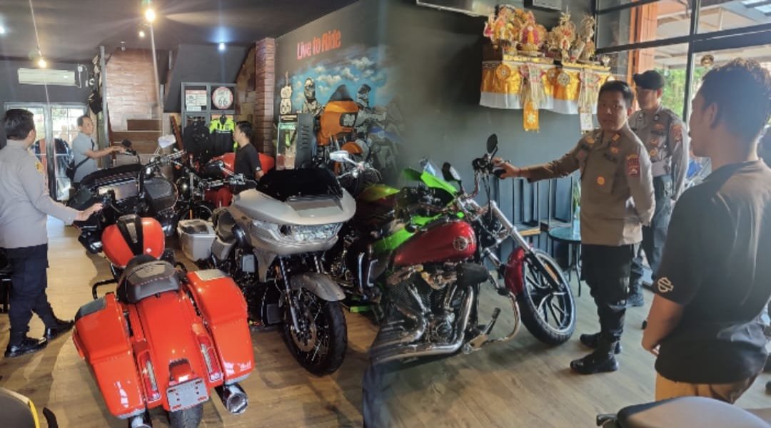 Barometer Bali | Denpasar – Kapolsek Denpasar Selatan, AKP Agus Adi Apriyoga, menyambangi komunitas pecinta Motor Gede (Moge) di BP Garage, Jalan Mertasari, Kelurahan Sidakarya, Denpasar Selatan, Kamis (24/7/2025).