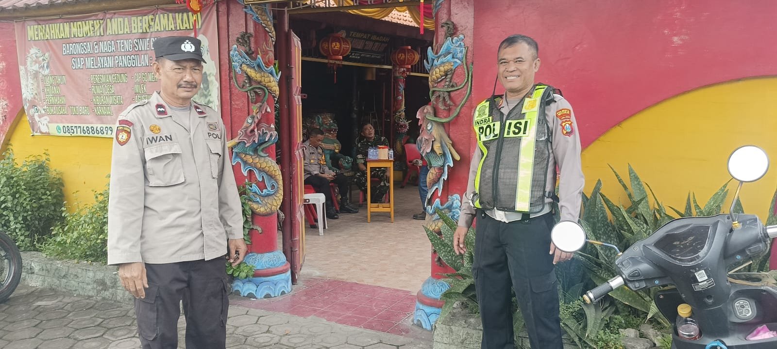 Foto: Kapolsek Krian dan Koramil saat lakukan patroli dan cek kesiapan perayaan imlek di Klenteng Teng Swie Bio, Krian. (barometerbali/redho)