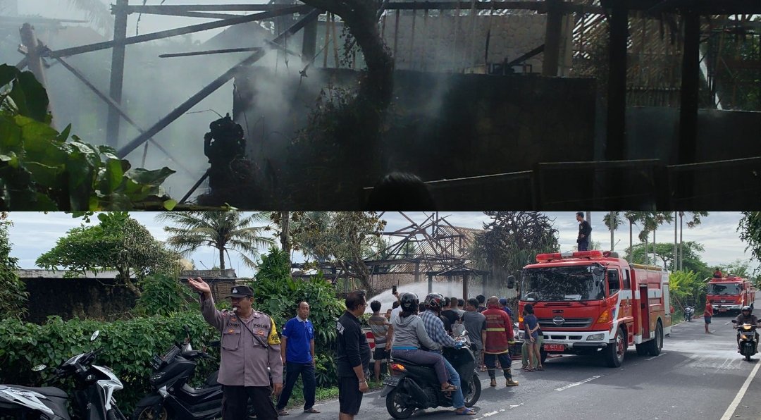 Penanganan kebakaran bekas warung Uma Anyar di Sibanggede, Angantaka, Kecamatan Abiansemal, Selasa (3/1/2023). Foto kolase: hms/res/bdg