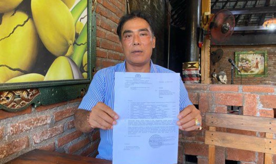 Foto: Notaris Putu Sarjana Putra menunjukkan SP3 dari Polda Bali terkait laporan dugaan penipuan dan penggelapan yang tidak cukup bukti. (Sumber: BB/GND)