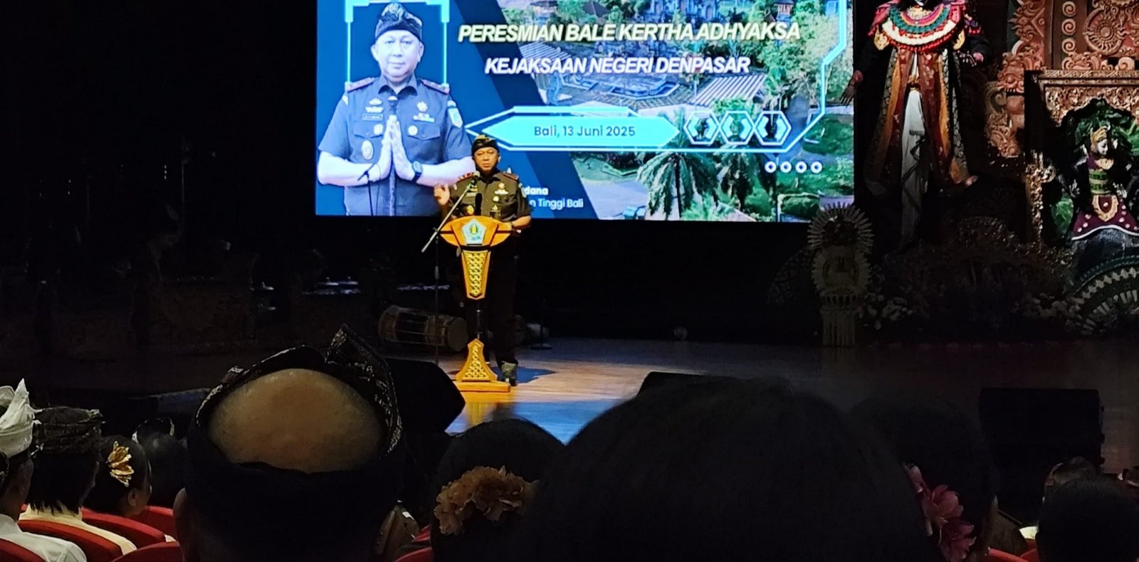 Kepala Kejaksaan Tinggi Bali, Ketut Sumedana saat memberikan sambutan dalam acara peresmian Bale Kertha Adhyaksa di Denpasar, Jumat (13/6/2025) (barometerbali/rian)