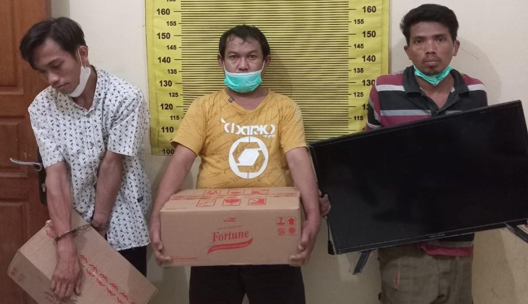 “Ketiganya masuk dengan merusak kunci pintu dan mengambil barang berupa 1 unit TV merk Panasonic 32 inchi, tabung Elpiji bluegas 10 kg dan 27 dus minyak goreng kemasan merk fortune milik korban,” jelas Kompol Sidik, Selasa (5/7/2022).