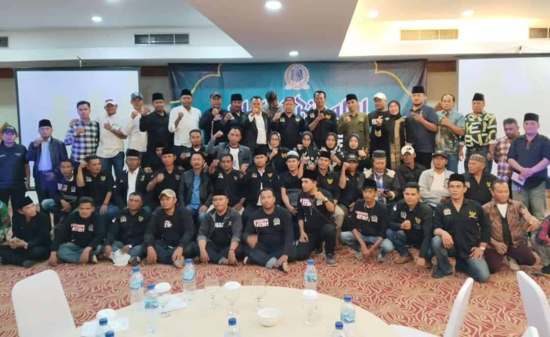 Foto: Pengurus anggota dan simpatisan Aliansi Madura Indonesia (AMI) menggelar halal bihalal. Acara yang bertujuan untuk mempererat tali silaturahmi dan meningkatkan persaudaraan antara anggota yang diselenggarakan di Hotel Santika Primer Gubeng, Kecamatan Gubeng, Kota Surabaya, Minggu (12/5/2024) pukul 19.00 Wib. (Sumber: BB/Redho).