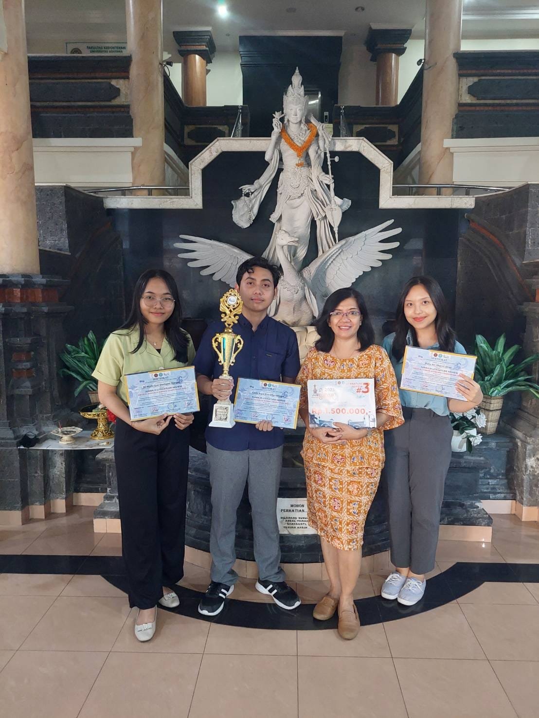 Denpasar | barometerbali – Sebuah kabar membanggakan datang dari mahasiswa FK Unud, Gede Arya Diva Dhananjaya, Putu Ari Shanti Dewi, dan Ni Made Ersi Dwitami Barsua dari PSSK Angkatan 2021 yang berhasil mencapai “Juara 3 Tingkat Nasional Lomba Literature Review dalam ajang Medical Djogja Scientific Competition 2023”. (15/05/2023).