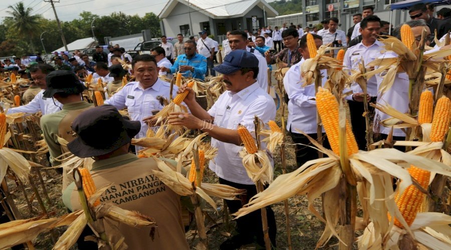 Foto: Panen perdana dalam rangka pelaksanaan program ketahanan pangan nasional yang dilaksanakan di Pulau Nusakambangan, Kamis (17/4). (Barometerbali/redho)