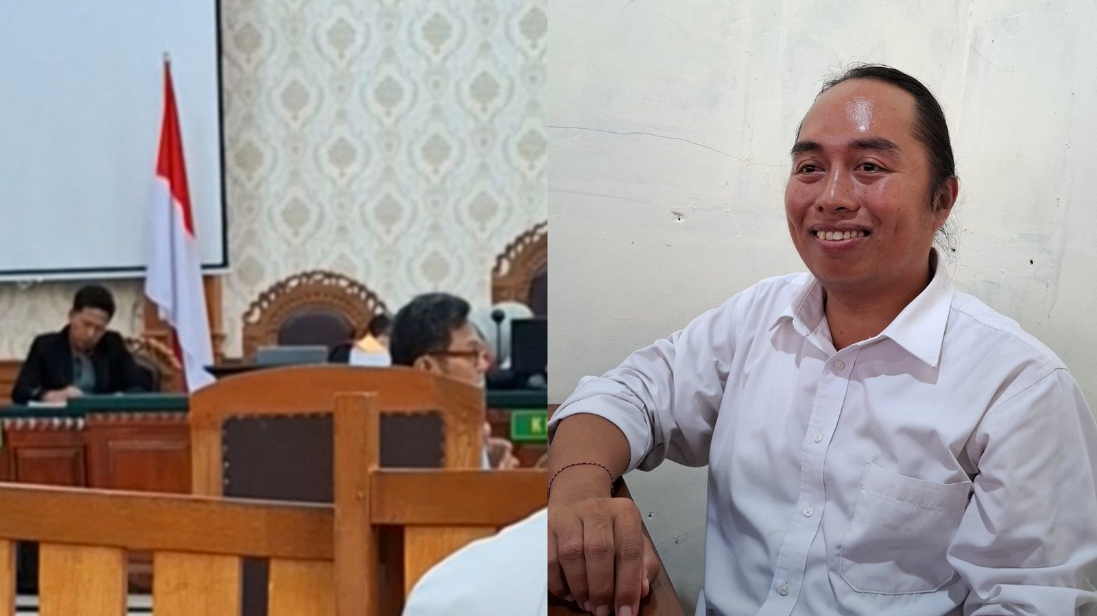 Kolase foto: Kuasa hukum ahli waris Jero Kepisah AA Ngurah Oka, I Made Somya Putra (kanan) menilai kesaksian Agus Suhendra tidak bisa membedakan mana silsilah yang asli dan palsu dalam sidang di PN Denpasar, Selasa (25/3/2025). (barometerbali/rah)