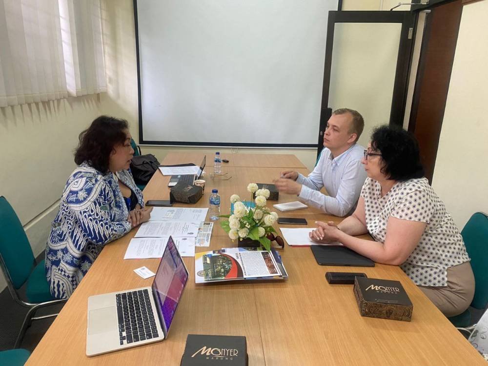Untuk mempererat hubungan kerjasama dengan Unud, KSPU melaksanakan kunjungan ke Kantor Urusan Internasional (KUI) Unud pada Jumat (14/07/2023) dan diterima langsung oleh koordinator KUI Dr.Eng. Ir. Ni Nyoman Pujianiki, ST., MT., M.Eng., IPM dan Divisi Kerjasama KUI Dr. Irma Rahyuda, A.Par, M.M., M.Par., M.Rech. KSPU yang diwakili langsung oleh Wakil Rektor Bidang Sains dan Kerjasama Mrs. Ilina Nina dan Dosen Sastra Inggris Mr. Vasily Slesarev mendiskusikan potensi kerjasama lebih lanjut di bidang pengembangan sains, pendidikan dan kebudayaan, perwakilan KSPU juga memberikan beberapa tawaran untuk melaksanakan beberapa program short course dengan Unud.