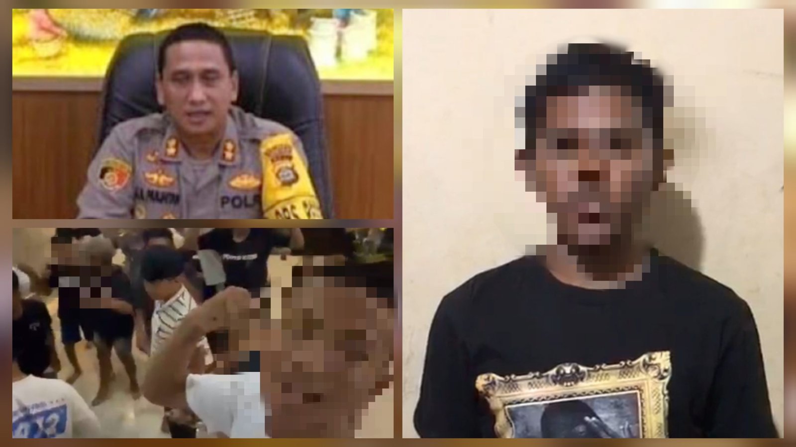 Kolase: Kabid Humas Polda Bali Kombes Pol Jansen Avitus Panjaitan dalam keterangan persnya, Kamis (20/7/2023) dan Ketua Kelompok “Bajing Kids” GFK dengan aksi pesta miras kelompok tersebut dalam tangkapan layar potongan video. (BB/Hms Polda Bali/tangkapan layar video)