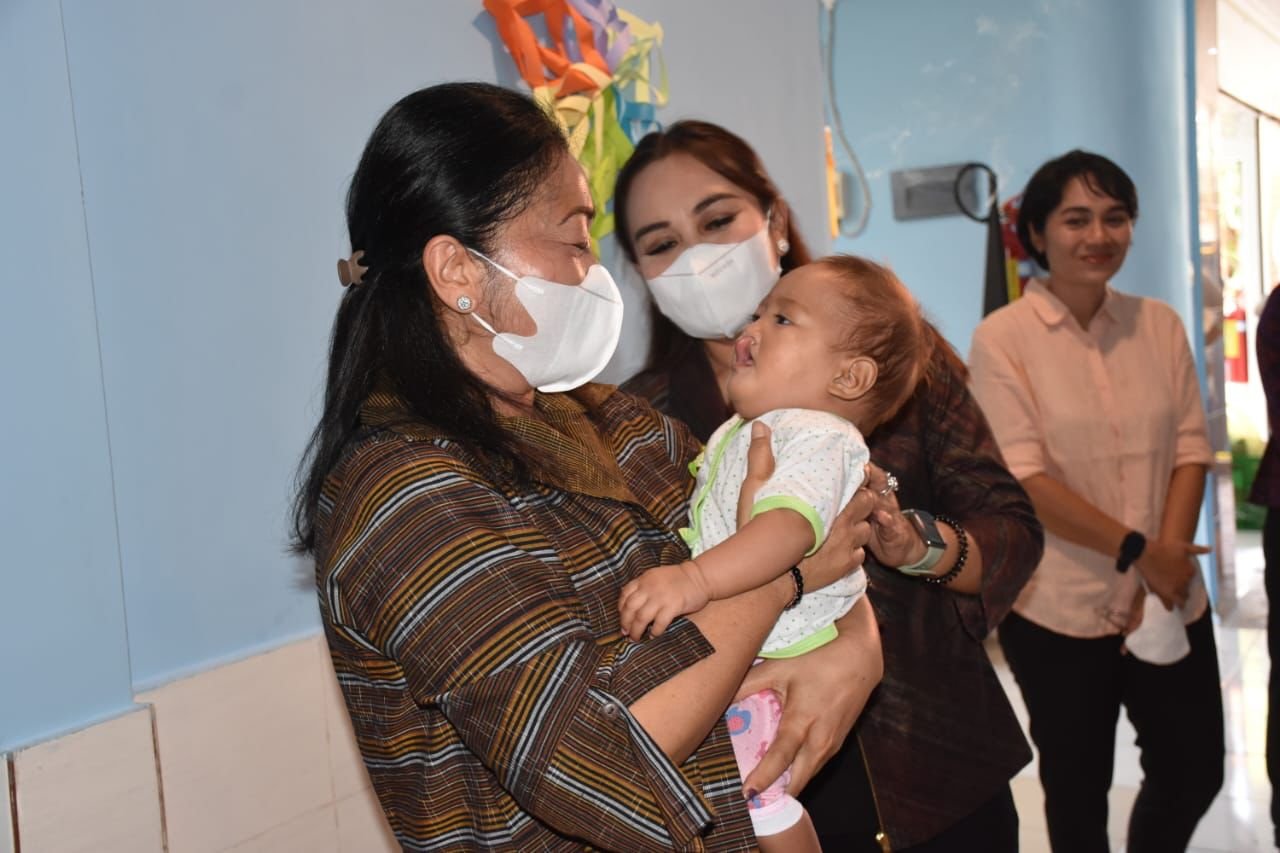 Sebelum acara dimulai, Ketua K3S Kota Denpasar Ny. Sagung Antari Jaya Negara dan Wakil Ketua Ny. Ayu Kristi Arya Wibawa meninjau keadaan anak-anak yang mendapat bantuan di yayasan tersebut.