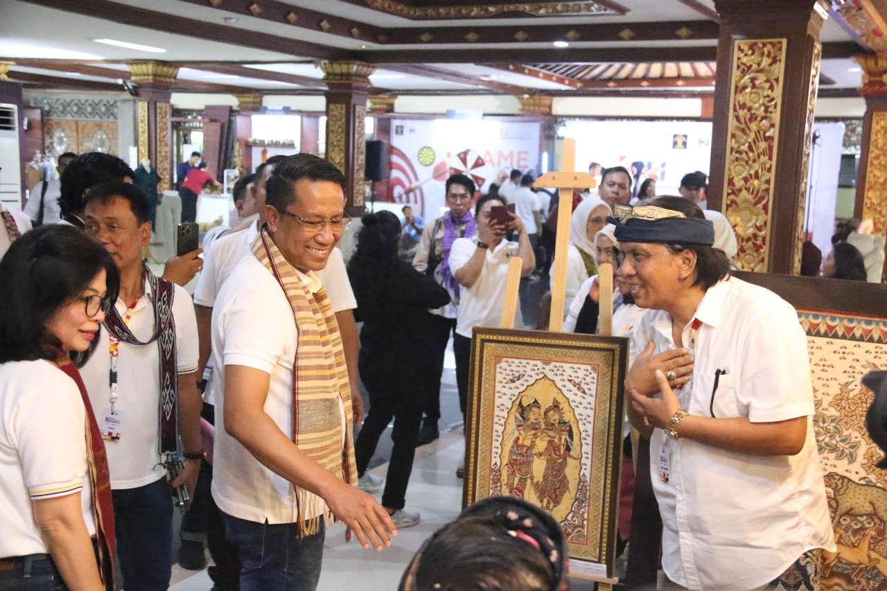 Ket foto: Menteri Hukum dan Hak Asasi Manusia, Supratman Andi Agtas kunjungi stand pameran dalam penutupan Festival Kekayaan Intelektual di Art Center, Denpasar, Bali, Sabtu (7/9/2024). (Sumber: barometerbali/skd)