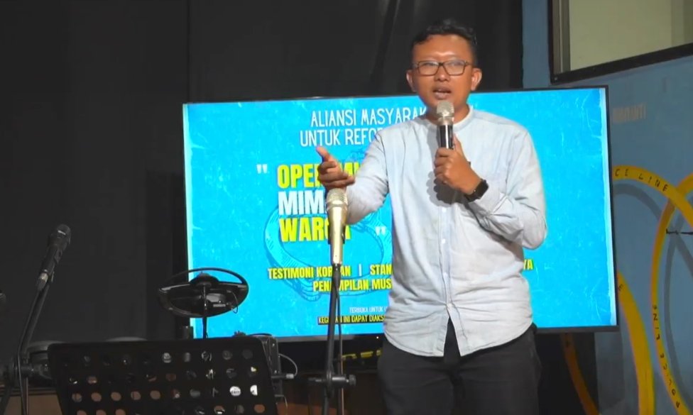 Foto: Ketua Advokasi Koalisi Masyarakat Sipi yang juga Ketua Umum YLBHI Muhammad Isnur saat diskusi Hari Bhayangkara 1 Juli 2023. (Sumber: Yayasan LBH Indonesia)