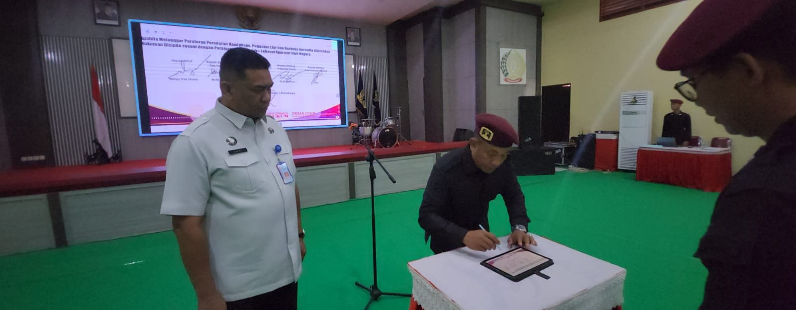 Sidoarjo | barometerbali – Pemberantasan Hp, pungli, dan narkoba (Halinar) terus digaungkan oleh Lapas Kelas I Surabaya Kanwil Kemenkumham Jatim, salah satunya dengan melaksanakan apel deklarasi dan penandatangan pakta integritas bersama Badan Narkotika Nasional Kabupaten (BNNK) Sidoarjo yang bertempat di Aula MD Arifin, Lapas Kelas I Surabaya, Rabu (06/11/2024).