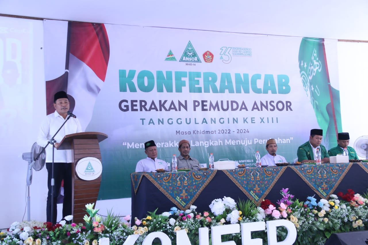 Foto: Konferensi Anak Cabang Gerakan Pemuda (Konfercab GP) Ansor resmi dibuka oleh Plt Bupati Sidoarjo Subandi. Kegiatan tersebut dilaksanakan di Aula MWCNU ll Komplek gedung BP3MNU /SMK MA’ARIF NU (Jl Tangkis mewah Ds Ngaban Kecamatan Tanggulangin Kabupaten Sidoarjo, Minggu (12/5/2024). (Sumber: BB/Redho).
