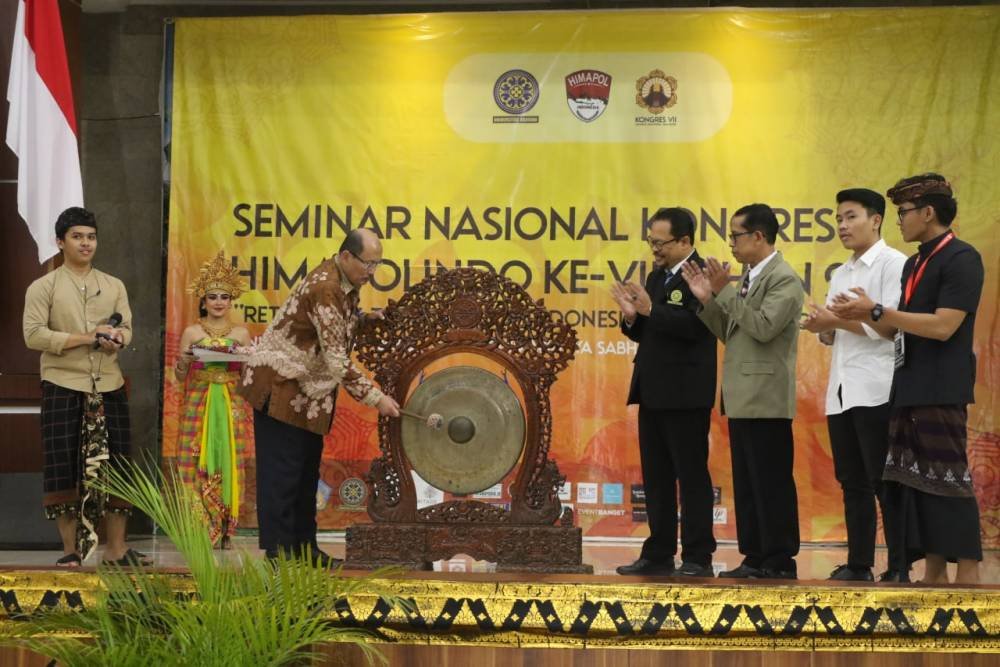 Jimbaran | barometerbali – Fakultas Ilmu Sosial dan Ilmu Politik (FISIP) Universitas Udayana (Unud) menjadi tuan rumah pelaksanaan Seminar Nasional dan Kongres VII Himpunan Mahasiswa Ilmu Politik se Indonesia (Himapolindo) Tahun 2022 bertempat di Gedung Auditorium Widya Sabha Kampus Jimbaran, Senin (5/12/2022). Kegiatan ini dibuka oleh Deputi VI Bidang Koordinasi Kesatuan Bangsa  Janedjri M. Gaffar dan dihadiri oleh Wakil Rektor Bidang Kemahasiswaan Unud, Kepala BRIDA Bali, perwakilan Bupati Badung dan Walikota Denpasar, Dekan FISIP Unud, Dekan Fakultas Hukum, Para Wakil Dekan FISIP, Koorprodi dan Ketua Umum dan delegasi Kongres VII Himapolindo.