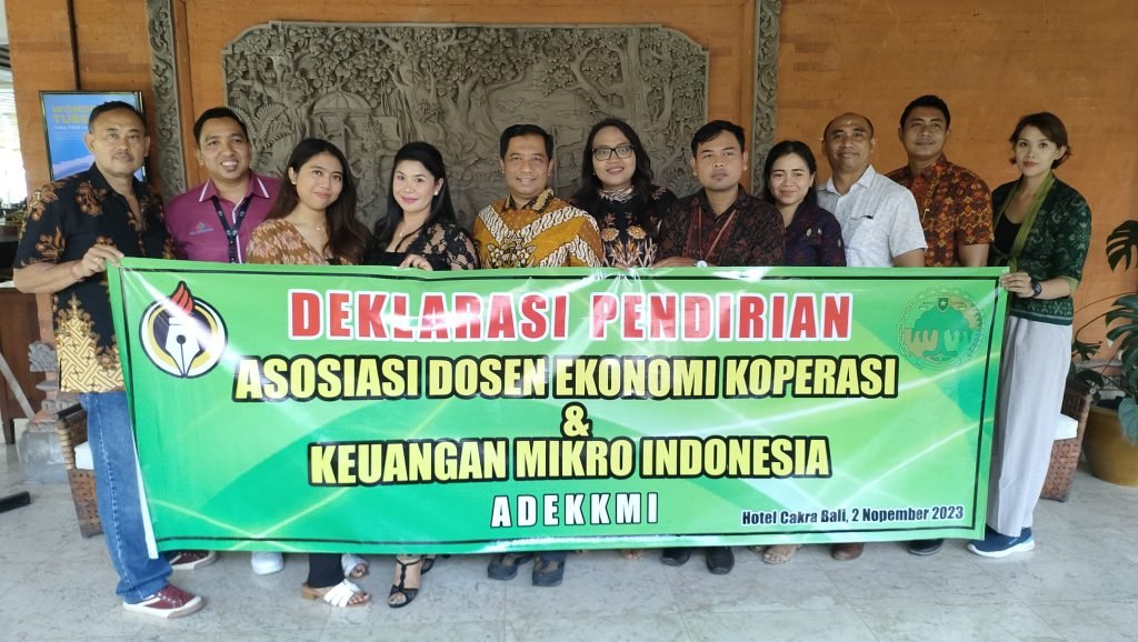 Denpasar | barometerbali – Asosiasi Dosen Ekonomi Koperasi dan Keuangan Mikro Indonesia (ADEKKMI) terdiri dari sejumlah dosen, peneliti, praktisi koperasi, pakar analis keuangan mikro berbagai perguruan tinggi, dan Lembaga Kajian Penelitian Perkoperasian di Indonesia dideklarasikan di Hotel Cakra, Denpasar, Bali, Kamis (3/11/2023)