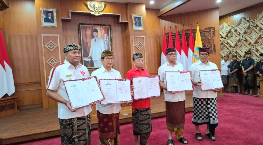 Barometer Bali | Denpasar – Gubernur Bali Wayan Koster bersama empat kepala daerah Denpasar, Badung, Gianyar, Tabanan (Sarbagita) sepakat mengalokasikan anggaran sebesar Rp56,3 miliar untuk penyelenggaraan transportasi publik Trans Metro Dewata tahun 2026. Kesepakatan ini dituangkan melalui penandatanganan perjanjian kerja sama di Kerta Sabha, Denpasar, Kamis (4/9/2025).