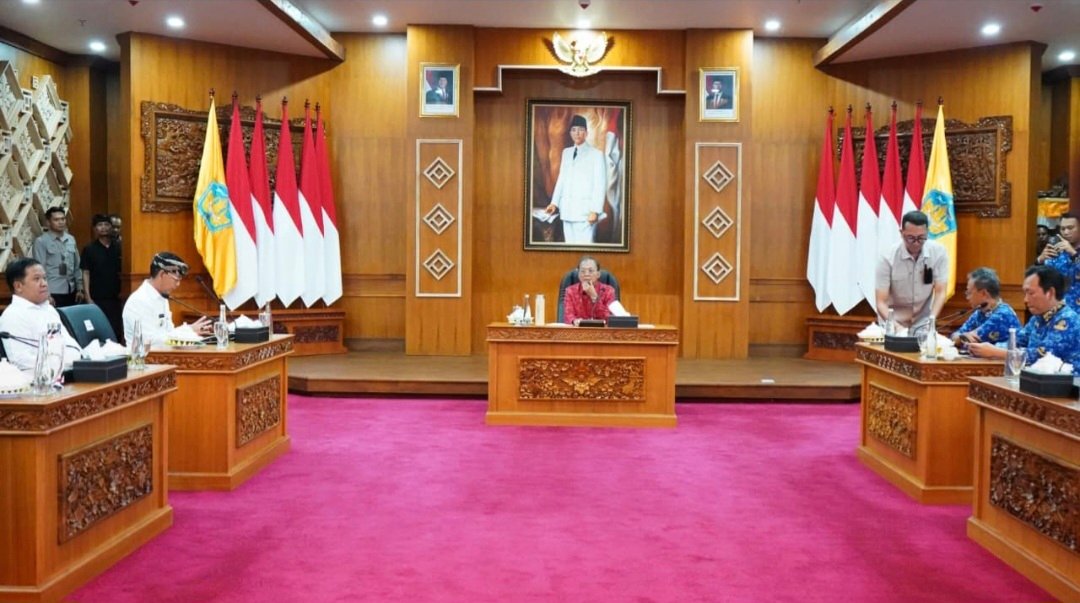 Barometer Bali | Denpasar – Gubernur Bali Wayan Koster memimpin rapat koordinasi bersama sejumlah kepala daerah di Gedung Kertha Sabha, Jaya Sabha Denpasar, Rabu (1/10). Rapat ini dihadiri Bupati Bangli Sang Nyoman Sedana Artha, Bupati Klungkung I Made Satria, Wakil Walikota Denpasar I Kadek Agus Arya Wibawa yang mewakili Walikota Denpasar, serta perwakilan dari Bupati Badung.