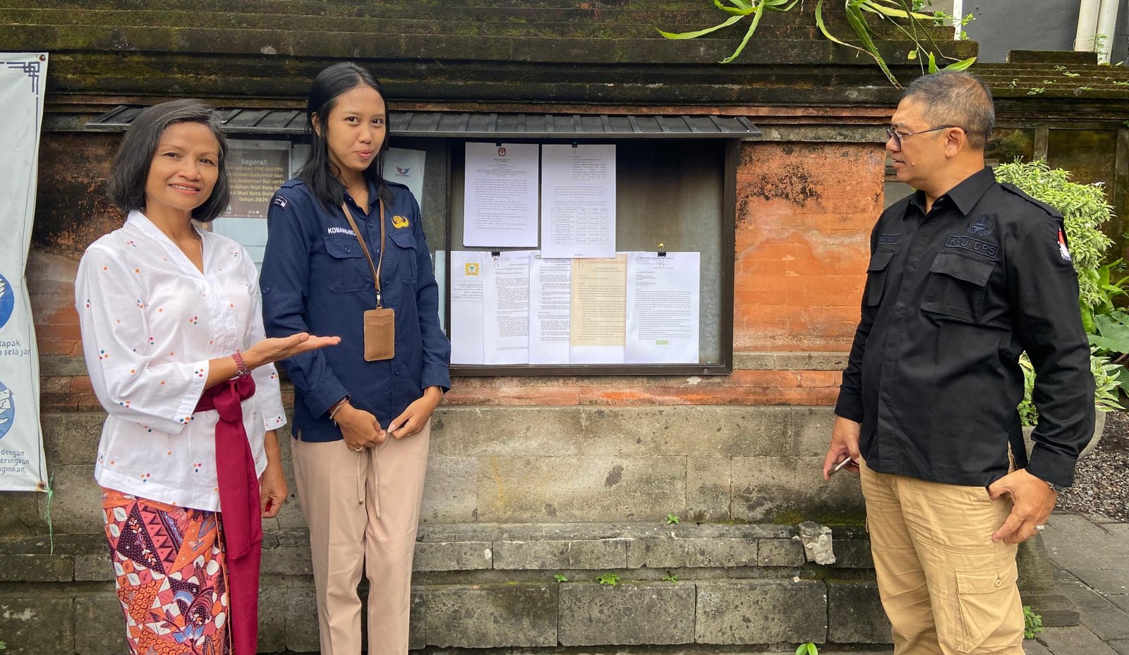 Foto: Ketua KPU Denpasar Dewa Ayu Sekar Anggraeni (kiri), seusai melakukan penempelan pengumuman rekrutmen badan ad hoc Pilkada 2024 di halaman Kantor KPU Denpasar, Selasa (23/4/2024). (Sumber: BB/Rian)