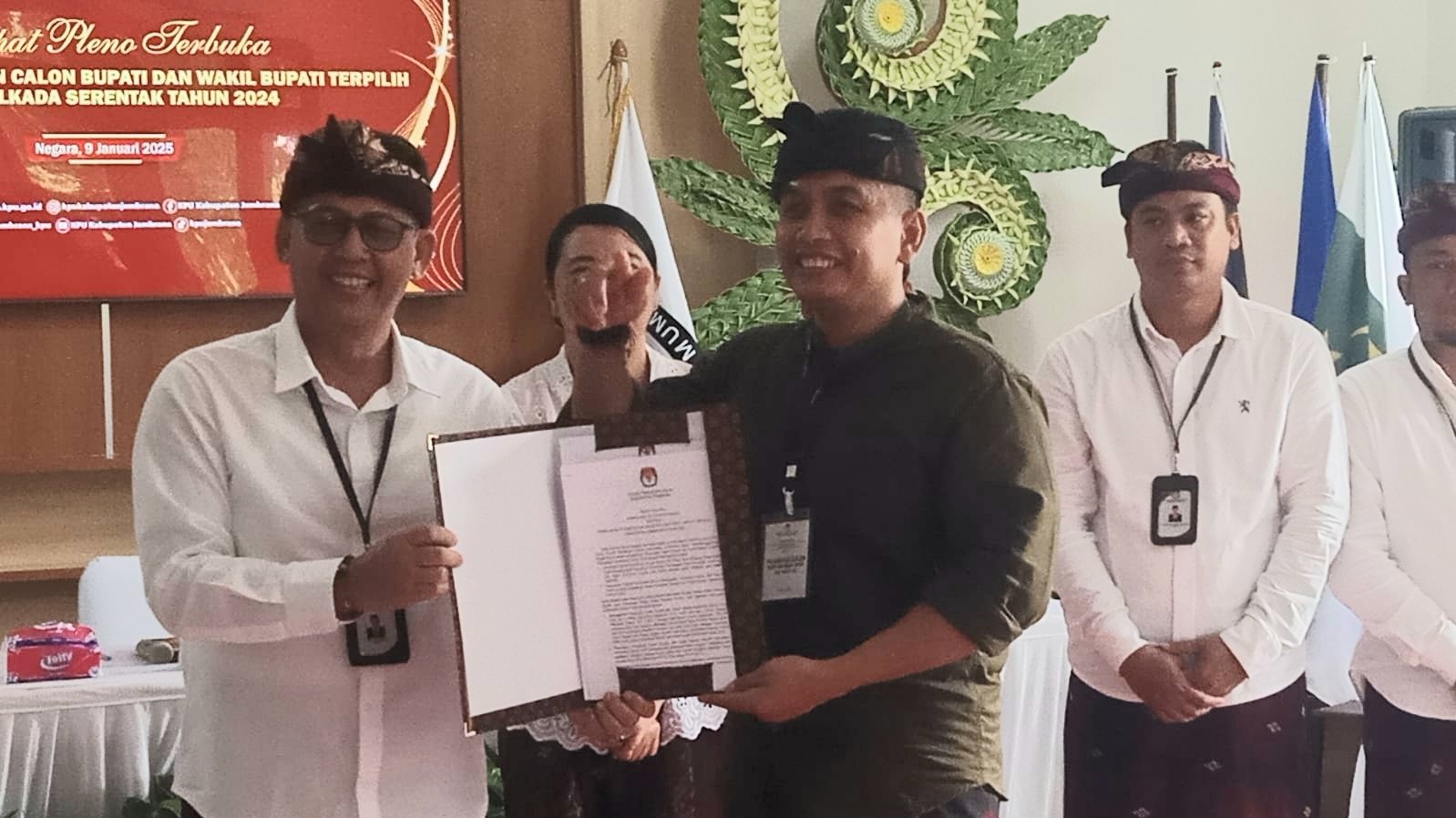 KPU Jembrana Menetapkan Bang Ipat sebagai Bupati-Wakil Bupati Jembrana Periode 2025-2030, Kedua Cabup Kompak tak Hadir