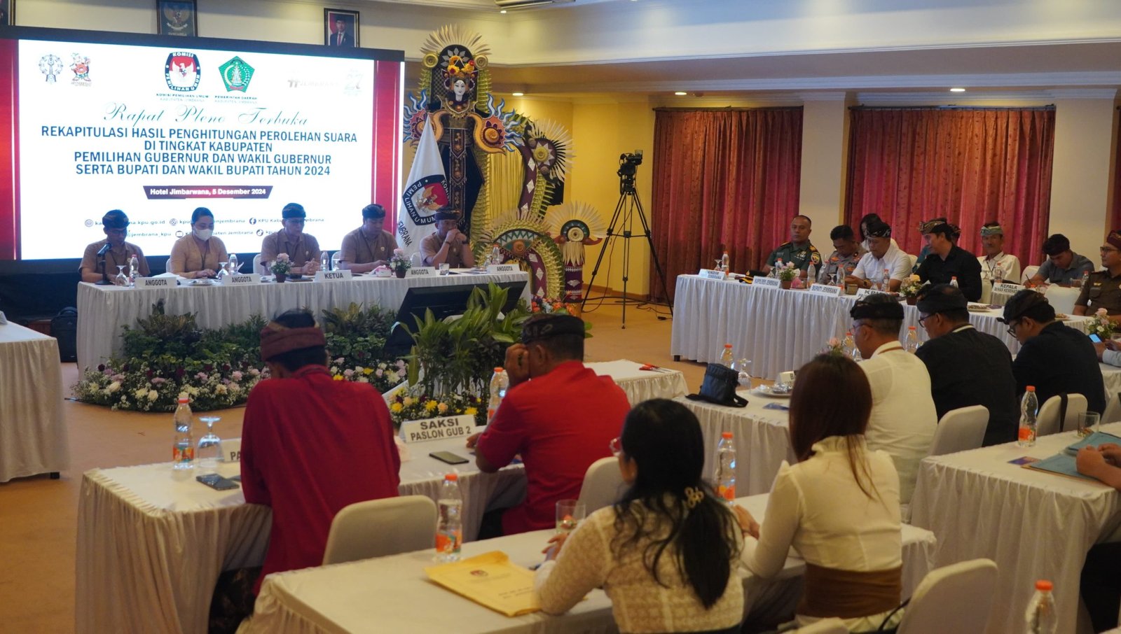 Foto: Rapat Pleno Terbuka Rekapitulasi Hasil Perhitungan Perolehan Suara di Tingkat Kabupaten Pemilihan Gubernur dan Wakil Gubernur serta Bupati dan Wakil Bupati Jembrana Tahun 2024, Kamis (5/12/2024). (barometerbali/217)