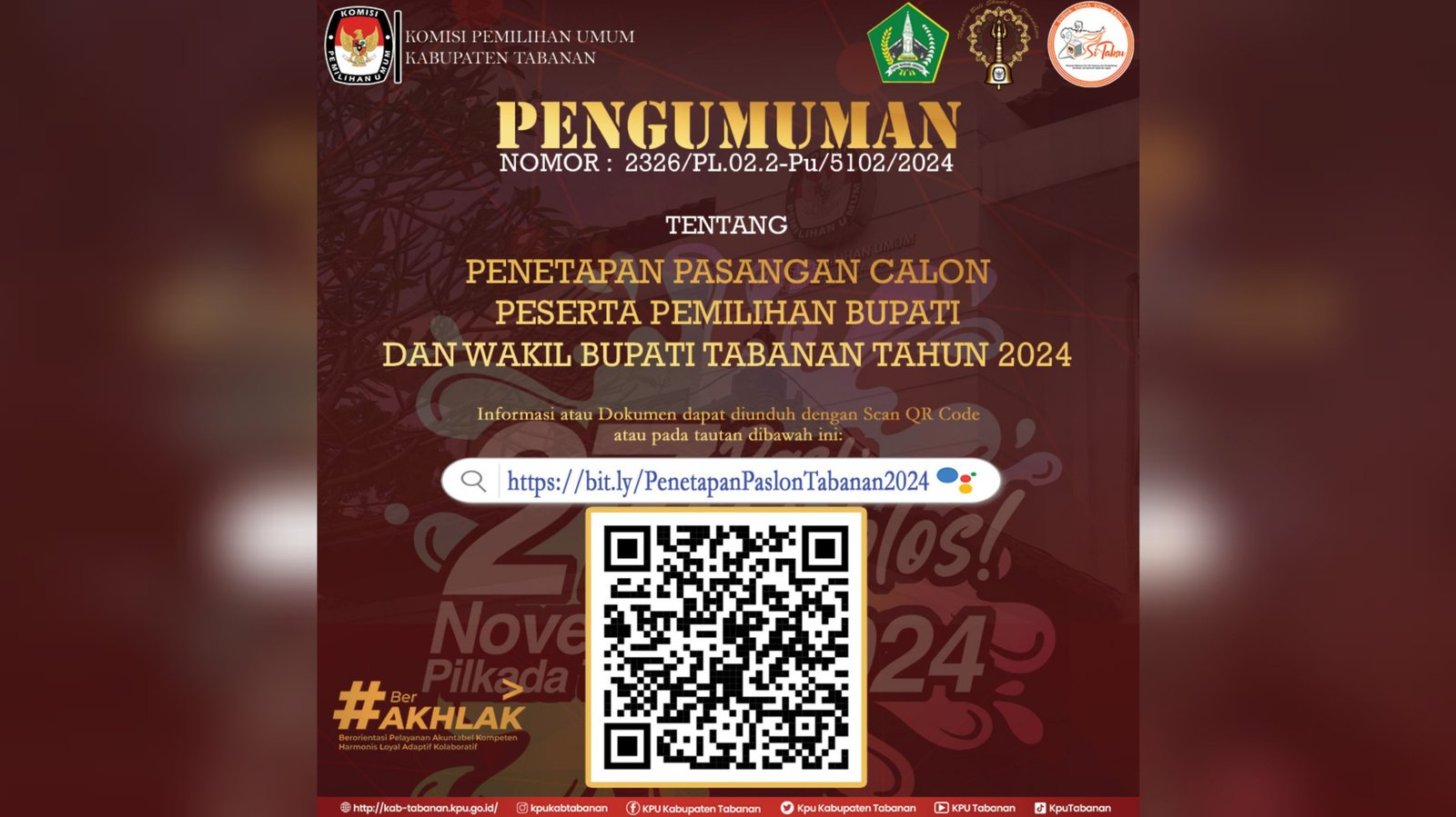 KPU Tabanan menyampaikan Pengumuman Penetapan Nomor Urut Paslon Bupati dan Wakil Bupati Tabanan pada Pilkada 2024