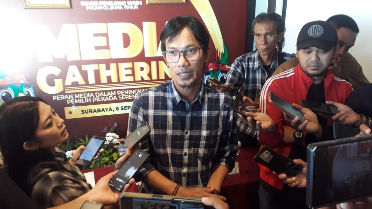 Ket foto: Komisioner KPU Nur Sallam menjelaskan Penetapan Calon Kepala Daerah dan DPT Kab-Kota di Jatim kepada awak media di Surabaya, Jumat (6/9/2024). (Sumber: barometerbali/redho)