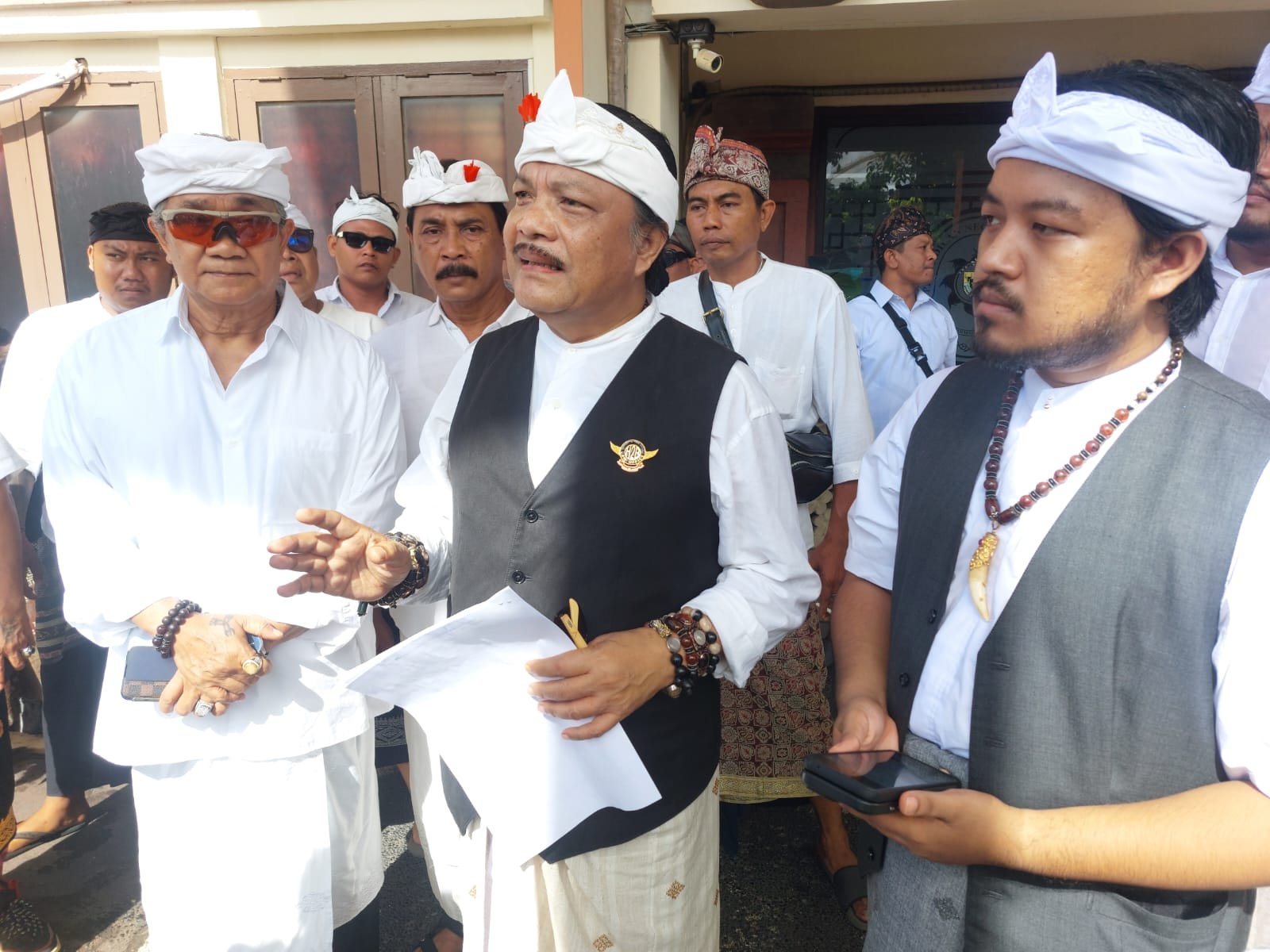 Pangempon Pura Dalem Balangan bersama tim kuasa hukumnya yang dipimpin oleh Harmaini Idris Hasibuan, SH saat diwawancarai di PN Denpasar, pada Jumat (6/2/2026) (barometerbali/rian)