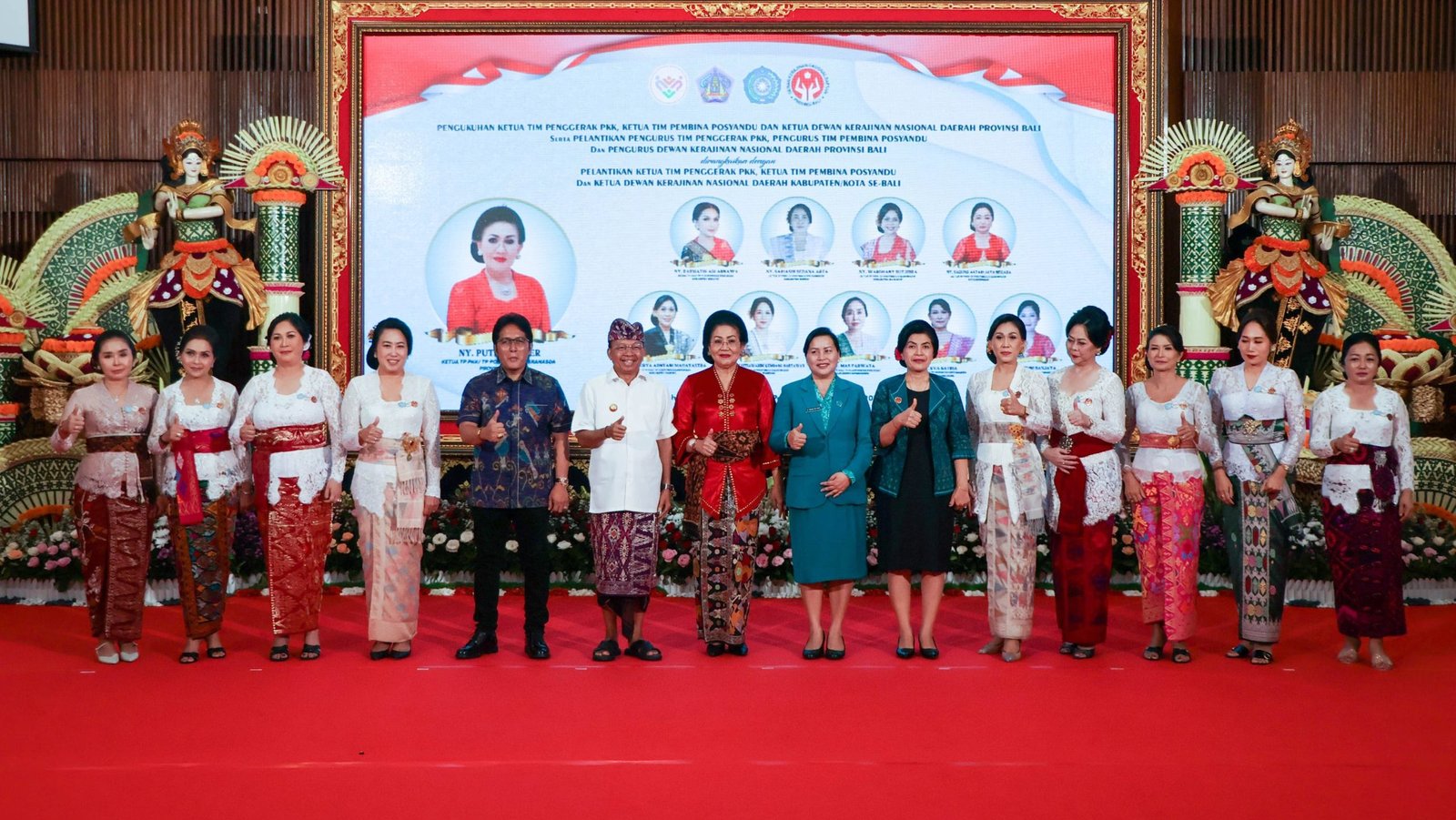Setelah dikukuhkan dan dilantik Gubernur Bali Wayan Koster, selanjutnya Ketua Ketua Tim Penggerak Pemberdayaan Kesejahteraan Keluarga (PKK), Ketua Tim Pembina Posyandu, Ketua Dewan Kerajinan Daerah (Dekranasda) provinsi Bali Putri Suastini Koster, melakukan pengukuhan dan pelantikan ketua kabupaten kota se Bali.