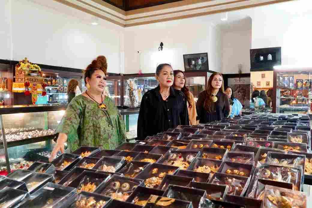 Barometer Bali | Gianyar – Ketua Dewan Kerajinan Nasional Daerah (Dekranasda) Provinsi Bali, Ny. Putri Suastini Koster, mengunjungi sentra perajin perak Bara Silver di Desa Celuk, Kabupaten Gianyar, Minggu (7/9). Kehadirannya disambut langsung oleh pemilik Bara Silver, Putu Sudiadnyani, yang akrab disapa Mami Bara.