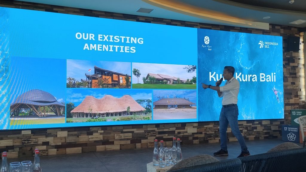 Foto: Head of Communications and Community Relations Kura Kura Bali Zakki Hakim memaparkan konsep pembangunan KEK Kura Kura Bali saat media gathering and site tour di Kura-Kura Bali, Serangan, Denpasar, Rabu (20/12/2023). (Sumber: BB/Ngurah Dibia)