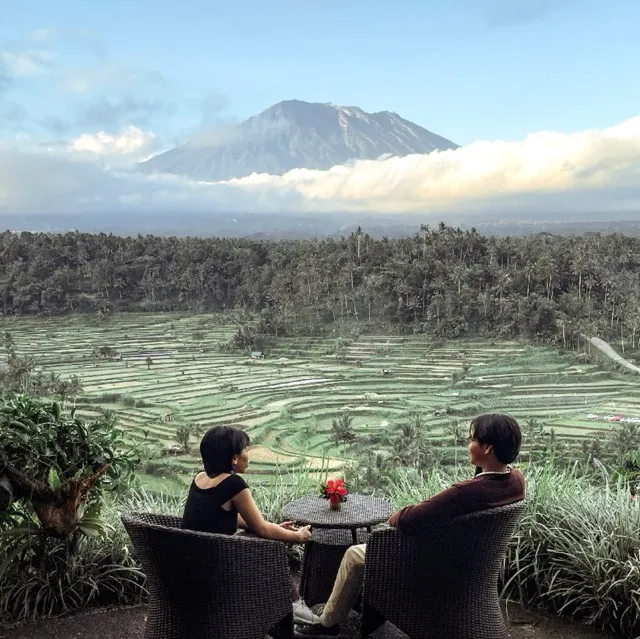 Barometer Bali | Karangasem – La Montagne Coffee & Mahagiri Panoramic Resort, salah satu tempat bersantai terbaik di Bali Timur dengan panorama persawahan dan latar Gunung Agung yang megah.