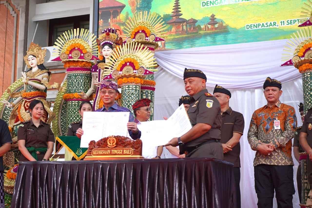 Hadir langsung Wakil Menteri Desa, Pembangunan Daerah Tertinggal, dan Transmigrasi RI, Ahmad Riza Patria, Gubernur Bali, Wayan Koster, Kajati Bali, Dr. Ketut Sumedana, S.H., M.H. serta Bupati/Walikota se-Bali.